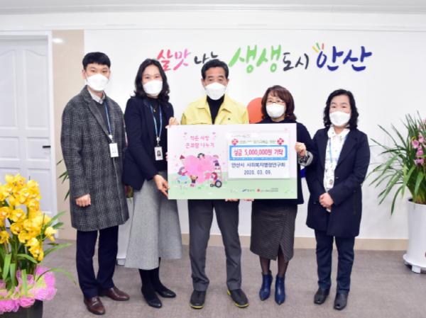 안산시(시장 윤화섭)는 안산시 사회복지행정연구회에서 코로나바이러스감염증-19(코로나19) 확산으로 어려움을 겪고 있는 대구·경북지역을 돕기 위해 시가 진행하고 있는 모금활동에 사용해 달라며 500만원을 기탁했다고 10일 밝혔다.