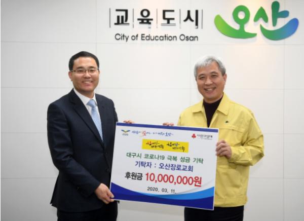 오산장로교회(담임목사 박병철)가 코로나19로 어려움을 겪고 있는 대구광역시를 지원하는 ‘힘내라 대구?경북, 힘내라 대한민국’캠페인에 동참하고자 특별성금 1천만원을 기탁했다.