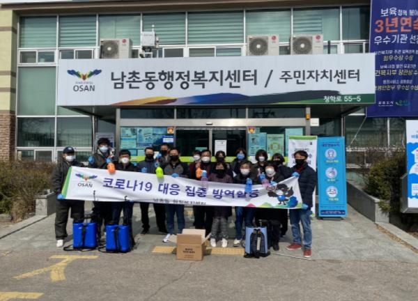 오산시 남촌동행정복지센터는(동장 김택주)은 19일 코로나19의 확산으로 인한 주민들의 불안감을 해소하기 위해 민관 합동방역을 실시했다고 밝혔다.
