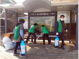 개인이 소지한 약제 분무기를 사용해 유동인구가 많은 공적마스크 판매소인 우체국과 농협 하나로 마트를 중심으로 초등학교 주변, 버스승강장 및 공중화장실에 소독방역을 실시했다.