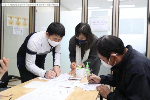 25일부터 발인상인연합회는 별도 공간을 확보해 지역 상인들을 대상으로 일괄 접수를 받고 있다.