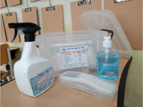 특히 비접촉식 체온계와 방역용 마스크, 손소독제, 장갑 등 방역물품으로 구성된 학급별 구급상자인 [감염병예방키트]를 학급별로 비치함으로써 감염병을 예방하고 유증상자 발생 시 즉시 대처할 수 있도록 준비하였다.