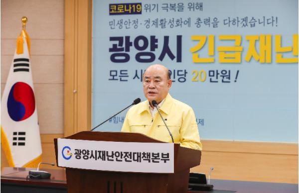 정현복 광양시장은 “코로나19 발생 후 생계가 어려워진 시민을 지원하기 위한 방안을 여러모로 검토해 왔다”며, “직접 피해를 입은 소상공인이나 취약계층 등을 선별하여 지원하는 방안 등을 논의했으나, 유례없는 위기 상황에 어렵지 않은 시민이 없고, 저소득층 및 취약계층에 대해서는 중앙정부와 전라남도의 별도 지원이 있다는 점을 고려하여 모든 시민에게 지급하기로 했다”고 말했다.