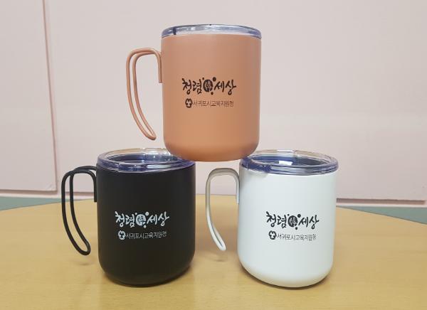 서귀포시교육지원청(교육장 강경숙)은 교육청 직원들의 청렴 실천 의지와 환경을 사랑하는 마음을 담은 스텐머그컵을 제작하여, 교육청을 방문하는 민원인들에게 배부한다.