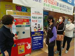 최근 면 마스크 사용자와 보건용 마스크 재사용자가 증가하고 있는 가운데 재사용에 따른 부작용을 줄여보고자 마스크 자외선소독기를 설치했다. 특히 전통시장 내 이용자가 찾기 쉬운 곳(고객쉼터 등)에 소독기를 설치하여 누구나 편리하게 이용할 수 있게 했다.