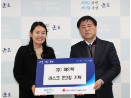 마스크 제작업체 파인텍, 군포시에 마스크 2만개 전달