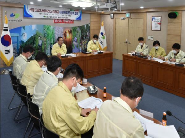 대구광역시 남구청(구청장 조재구)에서는 국내외 신종 코로나바이러스감염증이 확산 방지 선제 대응을 위해 지난 4일, 구청 2층 회의실에서 전 부서 및 남부경찰서, 중부소방서 관계자와 재난안전대책본부 회의를 개최하였다고 밝혔다.
