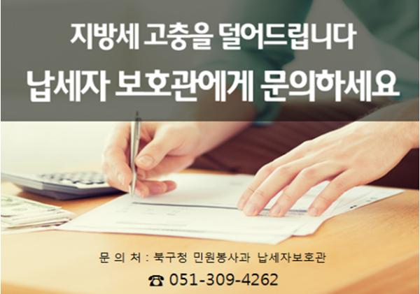 부산 북구(구청장 정명희)는 납세자의 권익을 보호하고 고충민원을 처리하고자 ‘지방세 납세자보호관’제도를 운영한다고 밝혔다.