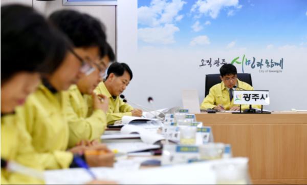광주시는 지난 21일 시청 상황실에서 코로나19 지역전파 방지를 위한 대처 상황보고회를 개최했다.