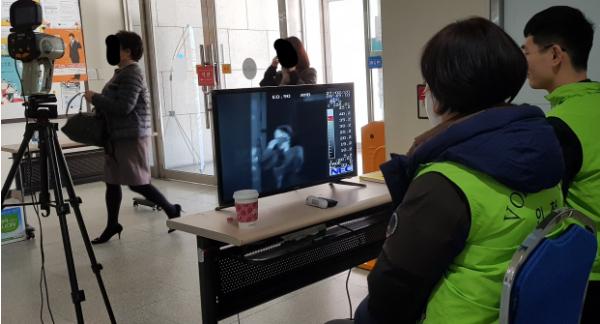 인천시자원봉사자들이 코로나19 확산 방지를 위한 주요 환승 지하철역에 열화상 감지기 모니터링 자원봉사활동에 앞장서고 있다.