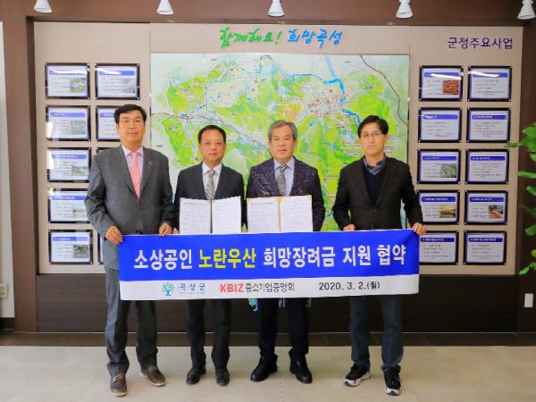 곡성군(군수 유근기)이 중소기업중앙회 광주전남지역본부가 노란우산 희망장려금 지원 협약을 체결했다.