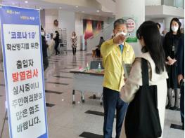 광주 서구(구청장 서대석)는 27일부터 시민들의 안전과 지역사회 감염병 차단을 위해 1층 로비를 비롯한 4곳의 출입구에 비접촉식체온계를 활용한 발열 측정을 실시한다.